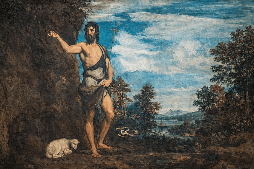 Ilustracja: „Św. Jan Chrzciciel” – obraz Tycjana – renesansowa ilustracja świętego Jana Chrzciciela (wersja modyfikowana).