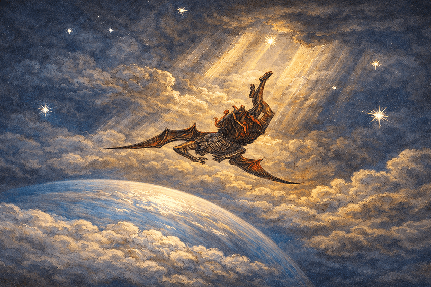 Obrazek: Ilustracja do „Raju utraconego” Johna Miltona autorstwa Gustave’a Doré (1866). Duchowy upadek Lucyfera, który staje się Szatanem (wersja modyfikowana).